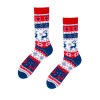 O reniferach św. Mikołaja mówi się zwykle jak o bajkowych pomocnikach, którzy elegancko suną przez zimowe niebo, ciągnąc czerwone sanie i rozsiewając magię Świąt. Mało kto jednak zastanawia się, skąd właściwie wzięła się ich legenda, dlaczego akurat te zwierzęta stały się ikoną Bożego Narodzenia i jak zmieniały się przez lata, wędrując od ludowych opowieści po popkulturowe supergwiazdy. Pora założyć cieplutkie skarpetki z reniferami i dowiedzieć się nieco więcej o pomocnikach św. Mikołaja. Wbrew pozorom wszystko nie zaczęło się ani na biegunie północnym, ani w wesołych wytwórniach zabawek. Najstarsze tropy prowadzą do nordyckich i syberyjskich kultur, gdzie renifery były zwierzętami totemicznymi, przewodnikami i symbolem siły. W wielu wierzeniach to właśnie one miały pomagać szamanom w przekraczaniu granicy między światami – wędrówka po niebie wcale więc nie była dla nich pomysłem z kreskówki, tylko echem dawnych mitów. Kiedy do tej mieszanki dołożyć zimowy klimat Północy, ciemne noce, zorze polarne i wyobrażenia o niezwykłych stworzeniach zdolnych podróżować szybciej niż wiatr, łatwo zrozumieć, dlaczego właśnie renifery stały się naturalnym towarzyszem postaci rozdającej prezenty. Do tego dochodzi literatura XIX wieku, szczególnie kultowy wiersz A Visit from St. Nicholas, w którym po raz pierwszy pojawiło się osiem imiennych reniferów. To tam wybrzmiały znane dziś imiona jak Dasher, Dancer czy Vixen, które dały początek całej późniejszej tradycji. Z czasem do tej grupy dołączył Rudolf – bohater piosenki z lat 40., który dzięki świecącemu nosowi błyskawicznie trafił do globalnej świadomości. Właśnie tak, trochę przez folklor, trochę przez literaturę i marketing, narodziła się reniferowa drużyna, która od dekad niezmiennie ciągnie sanie Mikołaja przez każdą grudniową noc, a teraz zdobi także zimowe skarpetki w renifery.