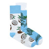 Kokosowe skarpetki mogą nie tylko poprawić Ci nastrój, ale też zachęcić Cię do zjedzenia kokosowych przysmaków. Tropikalny owoc zachwyca zarówno egzotycznym smakiem, jak i drogocennymi właściwościami. Miąższ kokosowy jest bogaty w błonnik, potas, magnez, fosfor oraz kwas foliowy. Wymienione składniki wykazują korzystny wpływ m.in. na pracę układu pokarmowego i układu nerwowego, a kwas foliowy stanowi niezbędny element diety kobiet w ciąży. Również w mleczku kokosowym znajdziesz bogactwo składników m.in. magnez, potas i nasycone kwasy tłuszczowe. Zdrowa jest też woda kokosowa, która słynie z właściwości remineralizujących i nawadniających. Miąższ kokosowy, wiórki kokosowe, mleczko kokosowe i woda kokosowa dają niezwykle wiele kulinarnych opcji. Oczywiście jest to doskonała podstawa deserów. Przy pomocy wymienionych składników stworzysz np. kokosanki albo ciasto lub batoniki kokosowe. Mleczko kokosowe jest z kolei często wykorzystywane w kuchni indyjskiej, gdzie stanowi składnik m.in. curry.